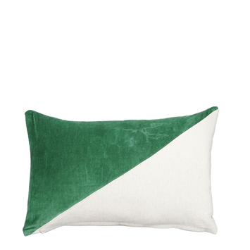 Met dit zachte kussen bevind je je in de zevende hemel. Het katoenen materiaal is fluweelzacht afgewerkt waardoor het niet alleen goed ademt maar ook erg prettig aanvoelt. Hij is voorzien van de kleuren limoengroen en wit waarbij ze diagonaal gescheiden zijn. Het model is langwerpig met een afmeting van 55 cm lang, 35 cm breed en 10 cm hoog. Dit kussen is ook erg mooi in combinatie met een van de andere fluwelen kussens uit onze collectie.