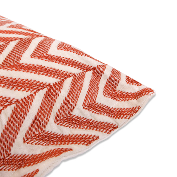 Het kussen Liv is een uit 100% fluweel katoen vervaardigd kussen met een roodbruine borduring in een grafisch patroon. Dit kussen is goed te combineren met bijv. kussen Nina in de kleur Roodklei. Dit kussen is een ware toevoeging op ieder interieur.