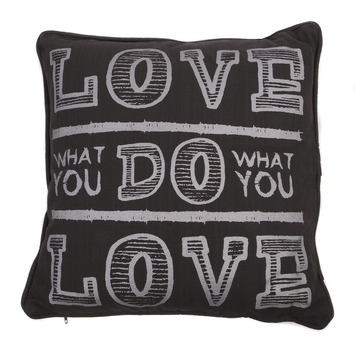 Het kussen love antraciet/zilver 45x45 cm heeft de vrolijke tekst 'Love what you do, do what you love'. Het herinnert je eraan dat je altijd moet doen waar je van houdt en dit ook moet waarderen. De neutrale antraciet en zilveren kleur zorgt dat het kussen gecombineerd kan worden met vele kleuren en stijlen. Het kussen is 45 bij 45 centimeter en is ook in andere kleuren verkrijgbaar.
