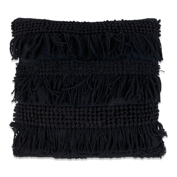 Kussen naturel in de kleur zwart is een speels katoenen kussen voor op de bank. Dit kussen met franjes is stevig, maar voelt toch lekker zacht aan. De afmetingen van dit kussen zijn 45 centimeter breed en 45 centimeter lang.