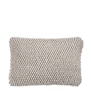 Voor een heerlijk zacht kussen dat gemaakt is van een natuurlijk product en ook nog eens van decoratieve waarde is zoek je niet meer verder. Dit langwerpige kussen is namelijk gemaakt van wol en heeft een prachtige structuur doordat hij voorzien is van gelijkmatig verdeelde kleine lussen. Met een gebroken witte kleur en een afmeting van 55 cm lang, 35 cm breed en 10 cm hoog is hij perfect te combineren met elk gewenst meubelstuk.