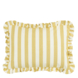 Geef je interieur een vrolijke uitstraling met dit sierkussen. Het kussen heeft een speels streeppatroon in de kleuren oker en wit, afgewerkt met ruches langs de rand. Gemaakt van katoen, voelt het heerlijk zacht aan. Lekker comfortabel! Dit sierkussen is perfect om je bank, bed of fauteuil extra sfeer te geven. Een gezellige toevoeging aan je woonkamer, kantoor of slaapkamer! De afmetingen zijn L70 x B50 x H10 cm.