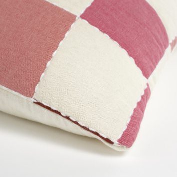 - Geblokte print in wit, rood, paars en roze zorgt voor een speels en kleurrijk accent