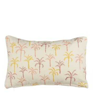 Voeg een vrolijke touch toe aan je interieur met dit sierkussen met een palmbomenprint in het geel, donkerroze en lichtroze. Hij is gemaakt van heerlijk zacht katoen, waardoor hij lekker is om tegenaan te leunen. Verder komt hij in het off-white en met de afmetingen L55 x B35 x H10 cm.