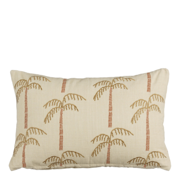 Wil je je interieur net dat beetje extra geven? Dit off-white sierkussen met palmbomenprint brengt meteen een vrolijke, tropische sfeer in huis. Gemaakt van zacht katoen, perfect om tegenaan te leunen. Hij heeft een lengte van 55 cm, een breedte van 35 cm en een hoogte van 10 cm.