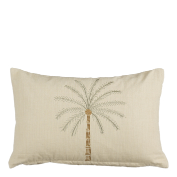 Wil je je interieur net dat beetje extra geven? Dit off-white sierkussen met palmboomprint brengt meteen een vrolijke, tropische sfeer in huis. Gemaakt van zacht katoen, perfect om tegenaan te leunen. Hij heeft een lengte van 55 cm, een breedte van 35 cm en een hoogte van 10 cm.