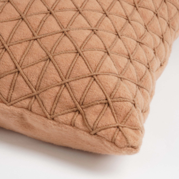 Dit lichtbruine sierkussen met doorgestikt driehoekpatroon geeft je interieur een rustige en stijlvolle basis. De stevige katoenen stof voelt prettig aan en voegt dankzij het grafische motief subtiele structuur toe aan je zithoek of slaapkamer. De warme kleur combineert mooi met natuurlijke materialen zoals hout en linnen, maar ook met zachte, lichte tinten. Met een langwerpig formaat van 55 bij 35 centimeter is dit kussen zowel decoratief als comfortabel – perfect voor op de bank of als accent op bed.