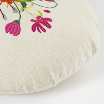 Bloemen maken blij! En van dit sierkussen wordt een bloemenliefhebber zeker vrolijk. Het sierkussen heeft een fraaie print van een vaas met bloemen. Het materiaal waarvan het sierkussen is vervaardigd, is katoen en voelt heerlijk zacht aan. Perfect om te gebruiken als decoratie op de bank, stoel of het bed, maar zeker ook om je hoofd of ander lichaamsdeel te ondersteunen tijdens het liggen. Het kussen is inclusief vulling en heeft een afmeting van ø45 cm.