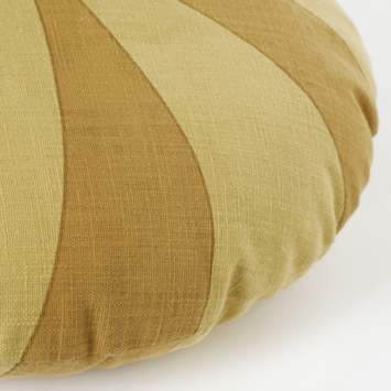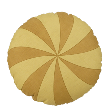 Verfraai de kinderkamer en maak het leuker met dit ronde siersierkussen. Het heeft een patroon dat veel weg heeft van een pepermunt snoepje. Zo krijgt de kamer een speelse uitstraling. Doordat het sierkussen is gemaakt van katoen voelt het daardoor heerlijk zacht aan. Zo kan je kleintje er ook comfortabel op liggen. Het sierkussen staat ook gewoon mooi in een hoekje, in combinatie met andere sierkussens, om zo een aangewezen speelhoekje te creëren. Het lichtbruine kussen is inclusief vulling en heeft een afmeting van ø45 cm.