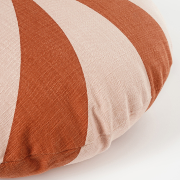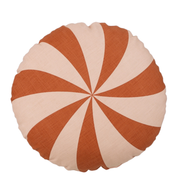 Verfraai de kinderkamer en maak het leuker met dit ronde siersierkussen. Het heeft een patroon dat veel weg heeft van een pepermunt snoepje. Zo krijgt de kamer een speelse uitstraling. Doordat het sierkussen is gemaakt van katoen voelt het heerlijk zacht aan. Zo kan je kleintje er ook comfortabel op liggen. Het sierkussen staat ook gewoon mooi in een hoekje, in combinatie met andere sierkussens, om zo een aangewezen speelhoekje te creëren. Het oranje kussen is inclusief vulling en heeft een afmeting van ø45 cm.