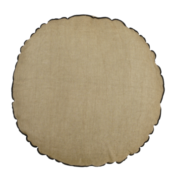 Dit ronde sierkussen is een leuke- en decoratieve toevoeging aan je bank of bed. Het zorgt ervoor dat het er gezelliger en uitnodigender uit ziet. Dit sierkussen is afgemaakt met een zwarte rand en het zorgt voor een natuurlijke uitstraling die zorgt voor een rustieke of bohemian stijl. Doordat het is vervaardigd van linnen, voelt het heerlijk en comfortabel aan. En het materiaal is ook nog slijtvast en ademend. Het taupe kleurige kussen is inclusief vulling en heeft een afmeting vanø55 cm.