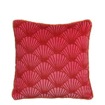 Geef je interieur een zomerse touch met dit prachtige sierkussen in rood. Het kussen is voorzien van een speels, roze patroon dat doet denken aan schelpen. Dankzij de rits is de hoes eenvoudig afneembaar, ideaal voor het reinigen. Door het zomerse patroon past het uitstekend in een vakantiewoning, strandhuisje of gewoon je eigen woonkamer. Hij is gemaakt van katoen en heeft de afmetingen L45 x B45 x H10 cm.