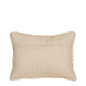 Dit beige sierkussen met linnenlook brengt een ontspannen sfeer in huis. De rafelrand en lichte tint geven het kussen een rustige, natuurlijke uitstraling die mooi past bij een kalme woonstijl. Dankzij de luchtige stof en het langwerpige formaat is het een fijne toevoeging op bed of als nonchalant accent op de bank. Met zijn afmetingen van 35 bij 25 centimeter voeg je met dit kussen eenvoudig comfort en stijl toe aan elke hoek van je interieur.