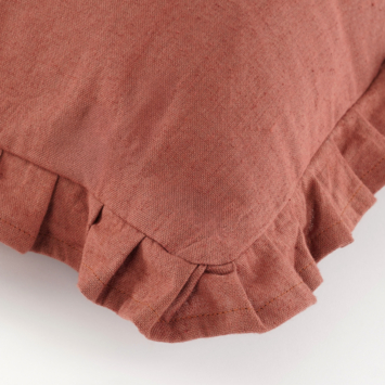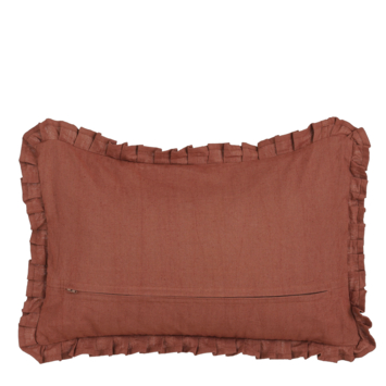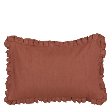 Geef je bank, fauteuil of bed een rustige en stijlvolle uitstraling met dit bruine kussen met rucherand. Het kussen is gemaakt van katoen en heeft een effen design, afgewerkt met een decoratieve rucherand rondom. Dankzij de neutrale kleur is het kussen makkelijk te combineren met andere kussens in verschillende kleuren en dessins. Met een formaat van L55 x B35 x H10 cm is het een fijne toevoeging voor extra sfeer en comfort in je interieur.