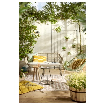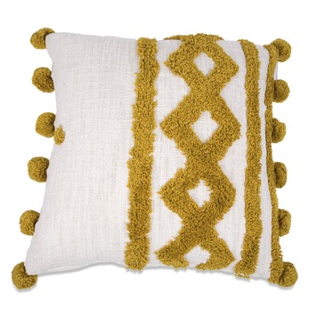 Het kussen Santa Fe in de kleur Honinggeel is een kelim kussen dat met de hand vervaardigd is. Het grafische patroon geeft een zacht gevoel en de pompoms aan de zijkant zijn van eenzelfde zacht katoen gemaakt. Dit kussen is een echte aanrader. De afmetingen van dit kussen zijn 45 centimeter breed en 45 centimeter lang.