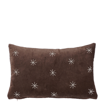 Met dit zachte kussen bevind je je in de zevende hemel. Het katoenen materiaal is fluweelzacht afgewerkt waardoor het niet alleen goed ademt maar ook erg prettig aanvoelt. Hij is voorzien van een heel subtiel sterrenontwerp waardoor hij past bij elk interieur. Dit kussen heeft daarnaast een pastelachtige donkerbruine kleur en is langwerpig met een lengte van 55 cm, een breedte van 35 cm en een hoogte van 10 cm.