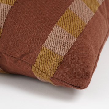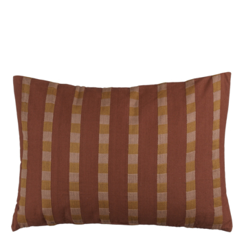 Leuk je woning op door een kussen toe te voegen aan je bank, relaxstoel of bed! Dit sierkussen, gemaakt van zacht katoen, is de perfecte toevoeging door de donkerbruine basis met gekleurde streepjes. Het kussen heeft een lengte van 70 cm, een breedte van 50 cm en een hoogte van 10 cm. Heb jij al een leuk plekje bedacht?