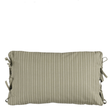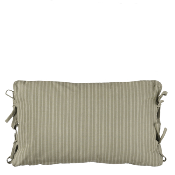 Bij dit sierkussen gaan stijl en comfort hand in hand! Het kussen is grijs gestreept een heeft strikjes aan de zijkanten. Hierdoor is het een subtiele toevoeging met net wat extra flair. Door het materiaal van katoen is hij lekker zacht. Plaats hem op een bank, stoel of fauteuil! De lengte is 55 cm, de breedte is 35 cm en de hoogte is 10 cm.