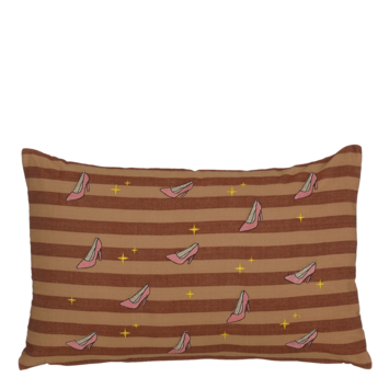 Dit sierkussen met geborduurde roze hakjes en kleine sterren brengt een vrolijke, glamoureuze touch in huis. De bruine streep als basis zorgt voor een stoer contrast, terwijl de glinsterende details zorgen voor een sprankelend effect. Gemaakt van katoen en comfortabel gevuld, is het niet alleen een blikvanger, maar ook heerlijk in gebruik. Leuk voor op de bank, in de tienerkamer of als speels detail in je kledinghoek. Met een formaat van 55 bij 35 centimeter mag dit kussen zéker gezien worden.