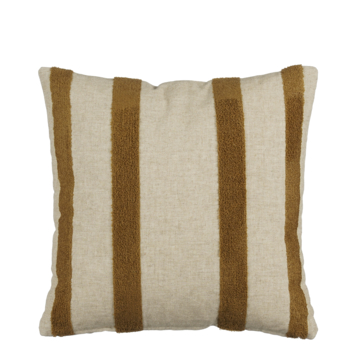 Upgrade je woonruimte met dit katoenen sierkussen. Hij is elegant verfraaid met subtiele streepjes in het lichtbruin. Het kussen, in de vorm van een vierkant, ziet er niet alleen leuk uit als decoratie, maar functioneert ook als comfortabele zitondersteuning! Verder heeft het kussen een ritssluiting waardoor je kussenhoes kunt reinigen. Waar leg jij dit sierkussen neer? De afmetingen zijn L45 x B45 x H10 cm.