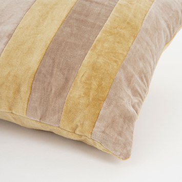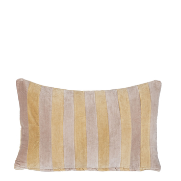 Met dit zachte kussen droom je heerlijk weg na een lange dag. Het katoenen materiaal is fluweelzacht afgewerkt waardoor het niet alleen goed ademt maar ook erg prettig aanvoelt. Hij is voorzien van een lichtbruine kleur met strepen. Het model is langwerpig met een afmeting van 55 cm lang, 35 cm breed en 10 cm hoog. Dit kussen is ook erg mooi in combinatie met een van de andere fluwelen kussens uit onze collectie.