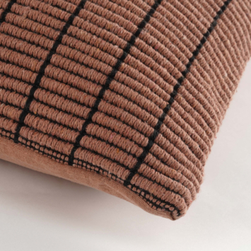 Dit roze sierkussen met zwarte lijnen brengt een stijlvolle balans tussen strak en speels. Het grafische streepontwerp zorgt voor een moderne uitstraling, terwijl de warme kleur net dat beetje zachtheid toevoegt. Gemaakt van stevig katoen en zacht gevuld, voelt het kussen comfortabel aan. Of je het nu combineert met effen tinten of drukkere prints, dit kussen past moeiteloos in een modern of industrieel interieur. Met een formaat van 45 bij 45 centimeter is het een opvallende, maar goed te stylen toevoeging aan je zithoek.