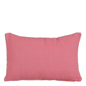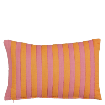 Geef je bank, fauteuil of bed een vrolijk accent met dit kussen met streepdessin in roze. Het kussen heeft een patroon met brede strepen in roze en oranje, waardoor het direct opvalt in je interieur. Met een formaat van L55 x B35 x H10 cm is het ideaal als sierkussen en makkelijk te combineren met andere kussens in effen kleuren of met bijpassende dessins. Perfect om extra sfeer toe te voegen aan elke ruimte.