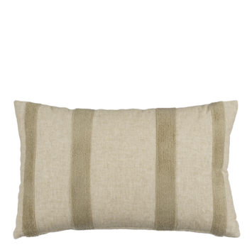 - Subtiele streepjes in taupe geven het kussen een elegante en rustgevende uitstraling