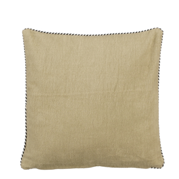 Op het eerste gezicht lijkt dit op een normaal sierkussen. Maar als je beter kijkt, zie je dat het iets extra heeft en dat is de gestreepte rand rondom. Dat maakt dit sierkussen een waar decoratiestuk om de bank of het bed ermee op te fleuren. Het sierkussen is gemaakt van katoen en voelt daardoor heerlijk zacht aan. Trek het daarom naar je toe om ermee te knuffelen of je hoofd erop te rusten. Het kussen heeft een warme taupe kleur, is inclusief vulling en heeft een afmeting van 45 x 45 cm.