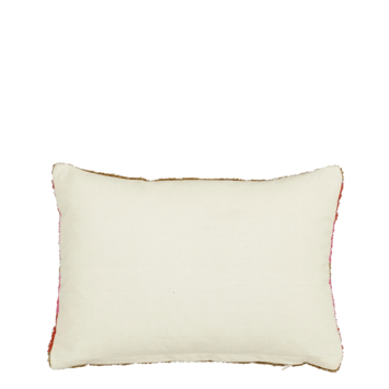 Breng kleur en gezelligheid in huis met dit opvallende sierkussen. Het kussen heeft een getuft patroon in vrolijke tinten roze, rood en bruin. Dit zorgt voor een speels en warm effect in je interieur. Het zachte katoen biedt extra comfort, waardoor het perfect is om op te relaxen. Met afmetingen van L35 x B25 x H10 cm is dit kussen een ideale keuze voor je bank, stoel of bed. Een eenvoudige manier om je interieur meer sfeer en stijl te geven!