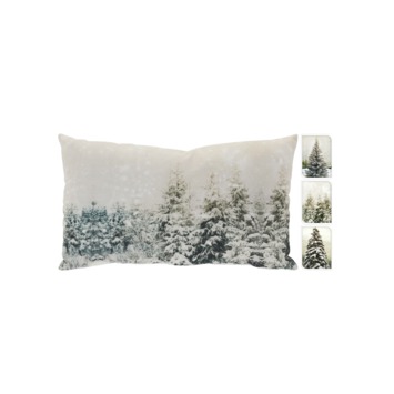 Het kerstseizoen is het seizoen vol met verlichting, decoratie en warmte binnen het huis. Je ontwerpt jouw interieur met eigen orginaliteit. Om de kerstsfeer helemaal in huis te brengen, is een kussen ideaal. Deze kussen is witgekleurd en bevat mooie kerstbomen. De kussen is 30 bij 50 centimeter en is gemaakt van textiel.
