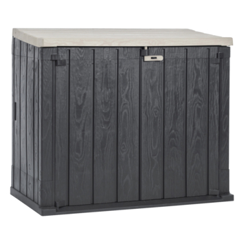 Een ideale box om tuinstoelen, ligbedden en de kussens daarvan op te bergen. Eindelijk een kussenbox waarin ook de kussens van een normale breedte passen. Die passen namelijk zelden in een lage kussenbox of je moet ze schuin in de box zetten. In deze box kunnen meerdere kussens op de zijkant geplaatst worden waardoor ze ook minder plaats innemen. De box sluit goed af en staat keurig in de tuin. Een box om zéker aan te bevelen!