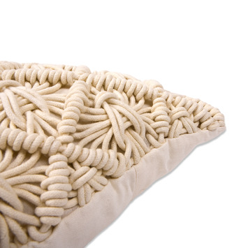Met een sierlijk aanzicht, kun je de Aster kussen mooi combineren met veel huisstijlen en meubilair. Zo maak jij jouw interieur compleet met een aangenaam warme sfeer. De kussen is sierlijk en modern tegelijk. De kussen is ecru gekleurd en is verder prachtig afgemaakt met handwerk. Een echte eyecatcher in de woonruimte dus! Ook is deze kussen heerlijk om er tegenaan te zitten met het koude weer. De kussen is 35 bij 55 centimeter.
