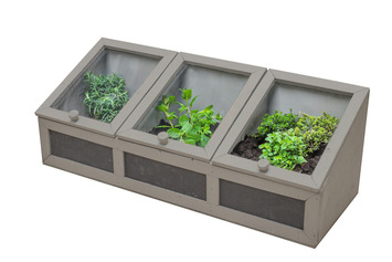 Kweekkastje h23xb66 cmis verdeelt in drie afzonderlijk te openen bakjes. Op ieder bakje kan met krijt de naam van de de groente, kruid of fruit worden geschreven zodat je altijd weet wat erin zit. Het kweekkastje is 23 centimeter hoog, en de kleur is grijs.