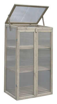 Dit Kweekkastje met deuren h120 cm is geïmpregneerd en heeft 2 deurtjes en een dakje. Dit kastje is prima te gebruiken voor jonge plantjes in het voorjaar. De kast is behandeld met een white wash verf waardoor deze een lichte uitstraling heeft. Het kastje is 120 centimeter hoog, 70 centimeter breed en heeft een diepte van 50 centimeter.