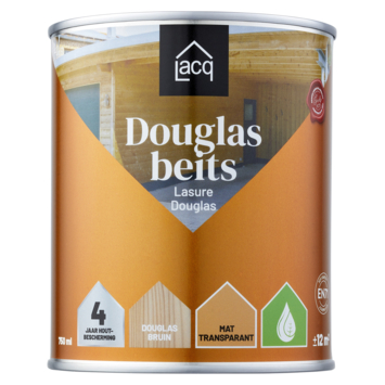 Lacq Douglas Beits bruin 750 ml is een watergedragen beschermingsmiddel speciaal geschikt voor douglas- en larikshout met een matte afwerking. Beschermt het hout tegen de weersinvloeden waardoor het hout lang zijn natuurlijke uitstraling behoudt. Watergedragen en opgebouwd uit plantaardige componenten. Dankzij de unieke samenstelling wordt er van binnenuit laagdikte opgebouwd. Deze vochtregulerende laag blijft flexibel zodat deze zelfs in belastende weersomstandigheden niet bladdert of scheurt en de kleur behoudt. Bescherm het hout tot wel 4 jaar!