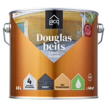 Goed dekkende beits voor douglas hout. Beits in de kleur zwart dekt goed en makkelijk op te brengen met kwast en roller. Hout is weer mooi zwart, ziet er weer als nieuw uit.