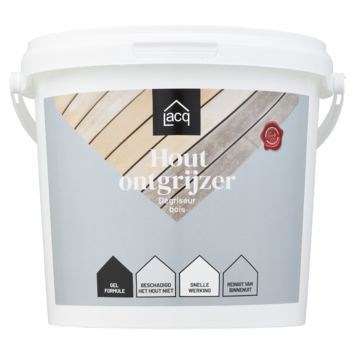 Lacq Houtontgrijzer 2,5 liter is een krachtige, gelvormige reiniger voor het ontgrijzen van vergrijsd en verweerd buitenhout. De gelformule zorgt er voor dat het hout diep van binnenuit gereinigd kan worden op zowel horizontale als verticale delen. Er is geen hogedrukreiniger nodig, zo zal het hout niet beschadigen!