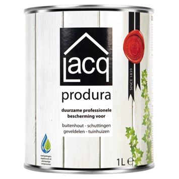 Lacq Produra buitenbeits transparant white clay mat 1 liter is een professionele matte beits voor al je houten ondergronden. Het is een duurzaam en hoogwaardig beschermingsmiddel. Produra is watergedragen en opgebouwd uit plantaardige componenten. Dankzij de unieke samenstelling, bouwt Produra van binnen uit een laagdikte op tot een transparante matte laag op het hout. Deze laag blijft lang flexibel en is ademend zodat deze zelfs in belastende weersomstandigheden niet bladdert of scheurt. Produra vergeelt niet en blijft dankzij het krachtige UV-filter lang kleur echt. Inhoudsmaat 1 liter.