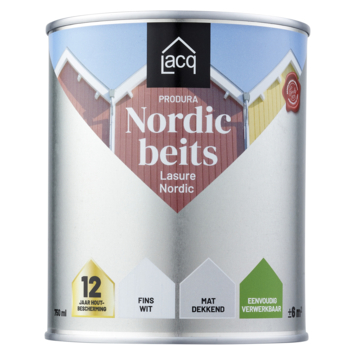 Met Lacq Produra Nordic beits mat Fins wit 750 ml geef je je houten oppervlak een langdurige bescherming en een stijlvolle matte uitstraling. Deze ecologische beits is geïnspireerd op Scandinavische technologie en traditie, en biedt bescherming tot wel 12 jaar. De beits is watergedragen en volledig vrij van microplastics. Dankzij de combinatie van lijnzaadolie en vier andere plantaardige oliën blijft het hout ademen en behoudt het zijn natuurlijke uitstraling. De beits is eenvoudig aan te brengen zonder druppelen.