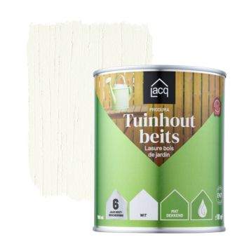 Lacq Tuinhout beits dekkend wit 750 ml is een watergedragen beschermingsmiddel voor houten ondergronden met een matte afwerking. Oplosmiddel arm en opgebouwd uit plantaardige oliën en water. Dankzij de unieke samenstelling wordt er van binnenuit laagdikte opgebouwd tot een transparante of dekkende laag op het hout. Deze laag blijft flexibel en is ademend zodat deze zelfs in belastende weersomstandigheden, niet bladdert of scheurt. Vergeeld niet