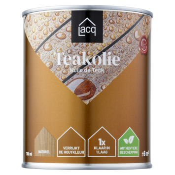 Lacq Teakolie 750 ml is een authentiek recept gebaseerd op diverse plantaardige oliën voor het jaarlijks beschermen en onderhouden van houten tuinmeubelen. Beschermt hardhout soorten zoals teak en bankirai voor langere tijd tegen vervuiling of vergrijzing, laat zich zeer eenvoudig verwerken en behoudt de natuurlijke houtkleur.
