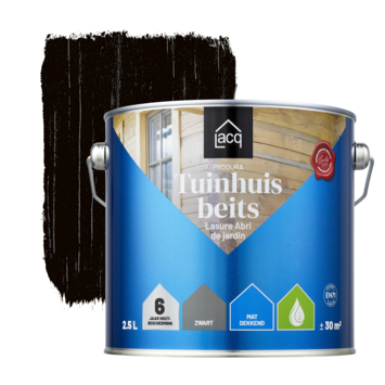 Lacq Tuinhuis beits dekkend zwart 2,5 liter is een watergedragen beschermingsmiddel voor houten schuren en tuinhuizen met een matte afwerking. Oplosmiddel arm en opgebouwd uit plantaardige oliën en water. Dankzij de unieke samenstelling wordt er van binnenuit laagdikte opgebouwd tot een transparante of dekkende laag op het hout. Deze laag blijft flexibel en is ademend zodat deze zelfs in belastende weersomstandigheden, niet