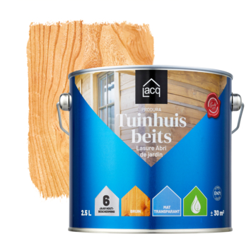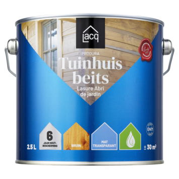 Lacq Tuinhuis beits transparant bruin 2,5 liter is een watergedragen beschermingsmiddel voor houten schuren en tuinhuizen met een matte afwerking. Oplosmiddel arm en opgebouwd uit plantaardige oliën en water. Dankzij de unieke samenstelling wordt er van binnenuit laagdikte opgebouwd tot een transparante of dekkende laag op het hout. Deze laag blijft flexibel en is ademend zodat deze zelfs in belastende weersomstandigheden, niet