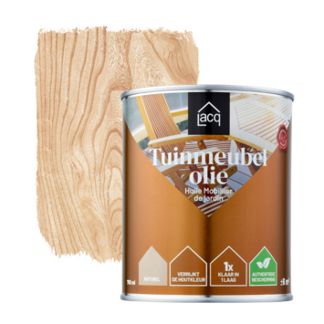 Lacq Tuinmeubelolie 750 ml is een authentiek recept gebaseerd op diverse plantaardige oliën voor het jaarlijks beschermen en onderhouden van houten tuinmeubelen. Beschermt hardhout soorten zoals teak en bankirai voor langere tijd tegen vervuiling of vergrijzing, laat zich zeer eenvoudig verwerken en behoudt de natuurlijke houtkleur.