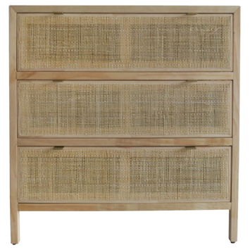 Deze prachtige ladekast met 3 laden biedt voldoende ruimte om je spullen in op te bergen. De naturel kleur maakt het mogelijk om deze in elk interieur te gebruiken, de messing handvatten maken de kast extra stylish.