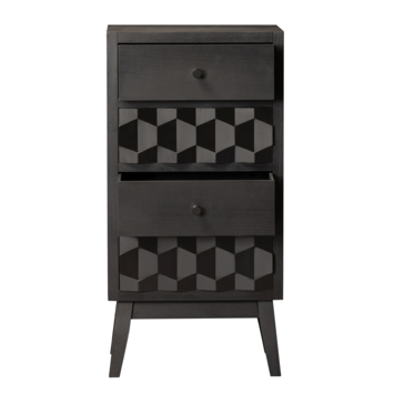 Het kastje is gemaakt van sterk grenenhout gecombineerd met MDF hout. De zwarte coating zorgt ervoor dat de Rijk ladekast tegen een stootje kan en vochtwerend is.
