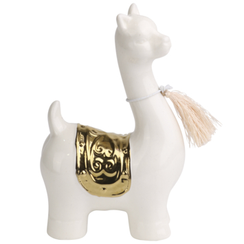 Hoe schattig is dit beeldje van de lama, met het kwastje en zijn gouden dekje, een echte eye catcher