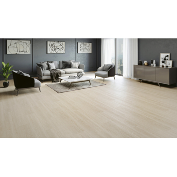 Laminaat Alanya Beige Eiken past in elke woonruimte door zijn natuurlijke uitstraling en matte all-over structuur. Het heeft een Scandinavische look. Deze onderhoudsvriendelijke vloer heeft een vlekvrij, gemakkelijk schoon te maken oppervlak. Het laminaat is eenvoudig te leggen door het micro 2g clicksysteem en heeft een vlakke groef aan alle zijdes.