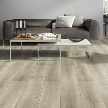 Verken de ultieme balans tussen elegantie en functionaliteit met het laminaat Waterbestendig lichtgrijs eiken. De lichtgrijs eiken kleur zorgt voor een rustiek karakter dat uitstekend past bij verschillende interieurstijlen. Aan alle zijden van de laminaatplank met voelbare houtstructuur bevinden zich V-groeven, waardoor deze de authentieke look krijgt van een echte houten plank. Met een klikverbinding is het laminaat eenvoudig te leggen, wat resulteert in een naadloos effect. Bovendien kan het laminaat zwevend worden geplaatst, zonder dat het aan de ondervloer vastgelijmd hoeft te worden. Ook de compatibiliteit met vloerverwarming maakt dit laminaat een verstandige keuze voor moderne woon-en leefomgevingen. Om valpartijen te voorkomen is het kliklaminaat antislip, waarmee het extra grip en stabiliteit biedt. Dit specifieke laminaat heeft als voordeel dat het geschikt is voor gebruik in vochtige ruimtes. Water kan gedurende een periode van maar liefst 48 tot 72 uur zonder problemen op de vloer blijven liggen. Het is mogelijk om dit matte laminaat als trapvloer te gebruiken. Het supersterke basismateriaal HDF (High Density Fiberboard) is PEFC gecertificeerd, wat betekent dat het hout afkomstig is uit duurzaam beheerde bossen. Laminaat is daarbij door zijn reinigingsgemak zeer onderhoudsvriendelijk. De laminaatvloer heeft een dikte van 8 mm, wat bijdraagt aan een goede stabiliteit en het product geschikt maakt voor zowel normaal commercieel gebruik als intensief woongebruik. Het product bevat 8 latten wat leidt tot een totale inhoud van 1.97 m².